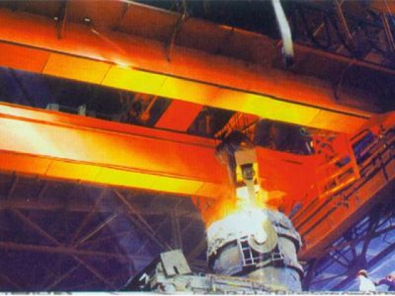 是制依靠沿厂房轨道方向的纵向移动、小车的横向移动和吊钩的升降运动来进行工作。适用于金属冶炼车间,符合JB/T7688.1-95及JB/T7688.15-95标准的用于吊运熔融金属的专用起重机。冶金起重机应用 一般适用于-10℃到+50℃的环境温度,在40℃的温度下相对湿度不超过50?,所吊运的熔融金属对锻钩、板钩的辐射温度不超过300℃。工作级别:A7、A8用于相对繁忙的冶金铸造车间